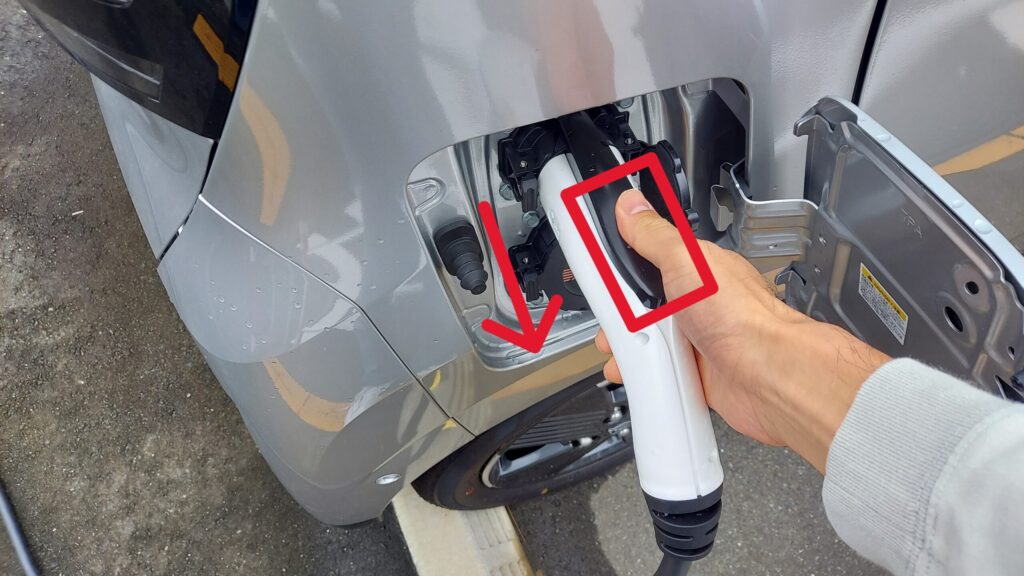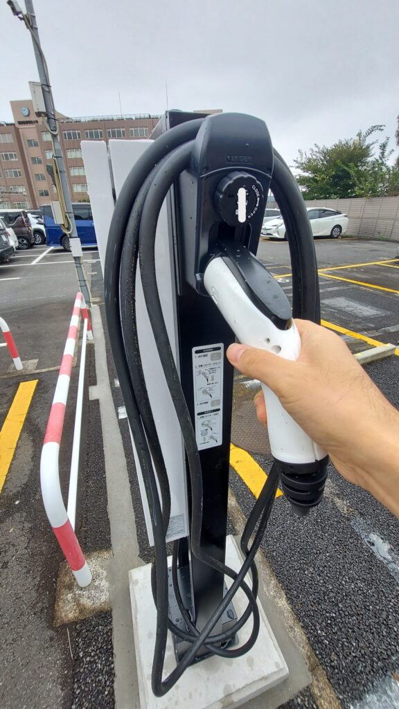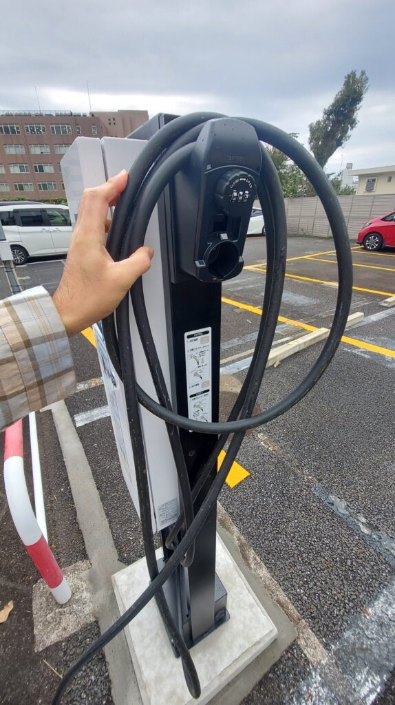 駐車ステーションでは、EVは充電プラグが、差し込まれた状態になっています。