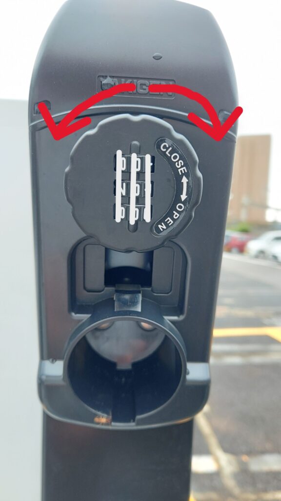 ④コネクタ収納口はダイアル番号をセットすると、「OPEN」側に回り、コネクタを差し込むことができます。