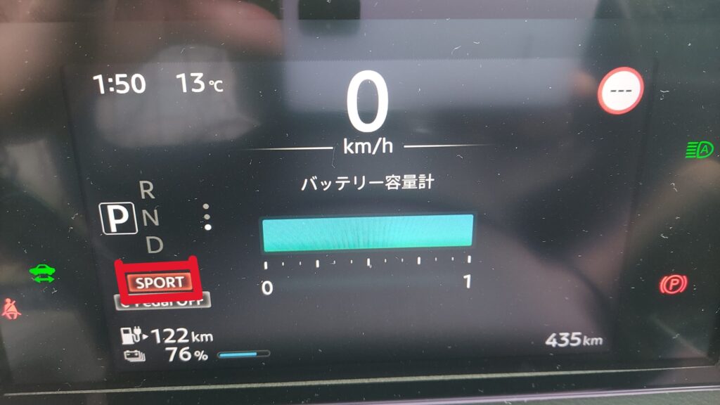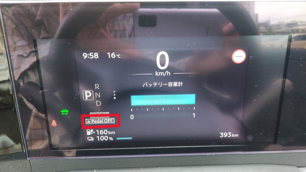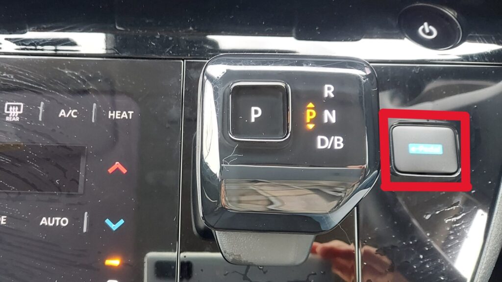 シフトノブ横の「e-Pedal」ボタンを押すと、メーター画面上で「ON」に切り替わります。