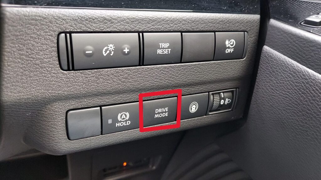 また、ハンドル右下に「DRIVE MODE」のボタンを押すと、画面に表示されていますが、変更することができます。