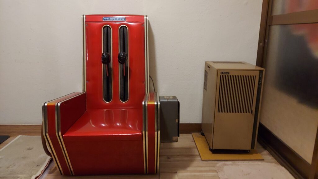 脱衣場に案内され、扉を開けてまず目を引いたのが、「昭和レトロ」なマッサージ機です。
