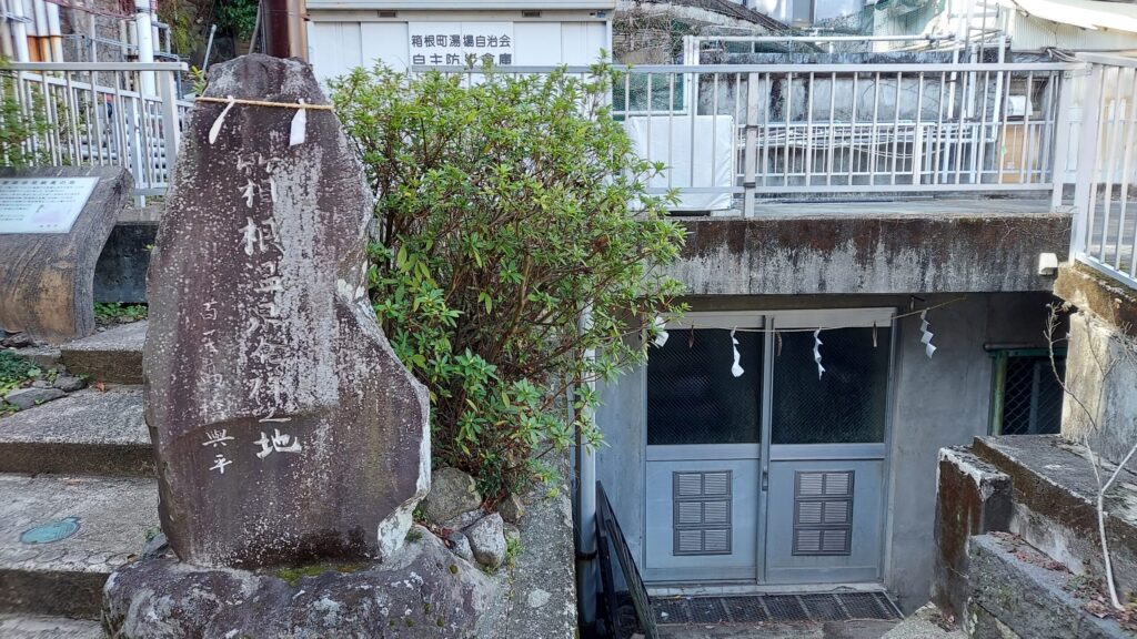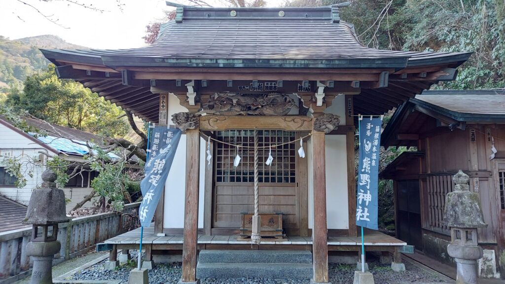 源泉は、50m程離れたところにある「熊野神社」の境内にあります。