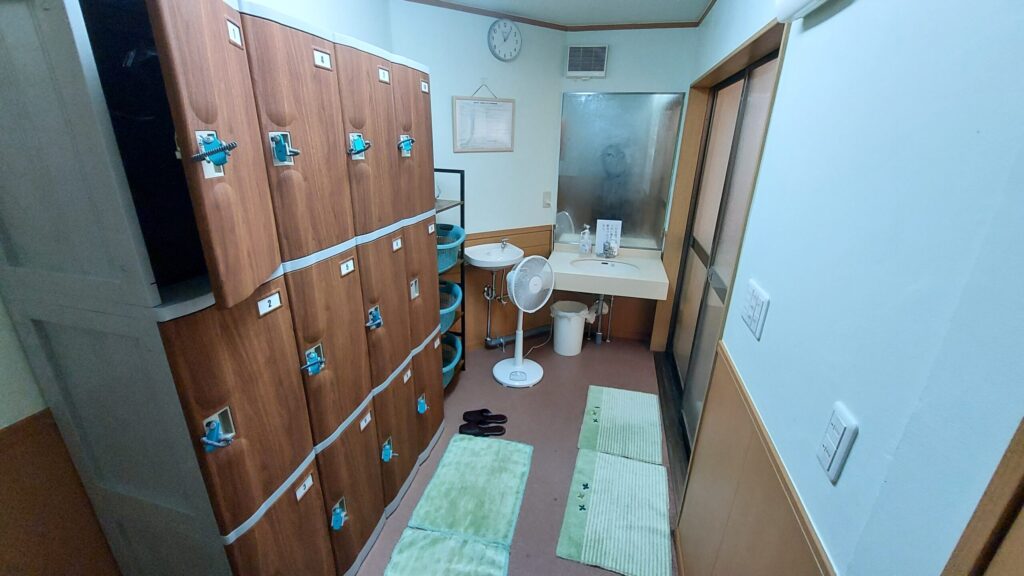 脱衣場は、広くはないですが、大きめの鍵付きロッカーが備え付けられています。