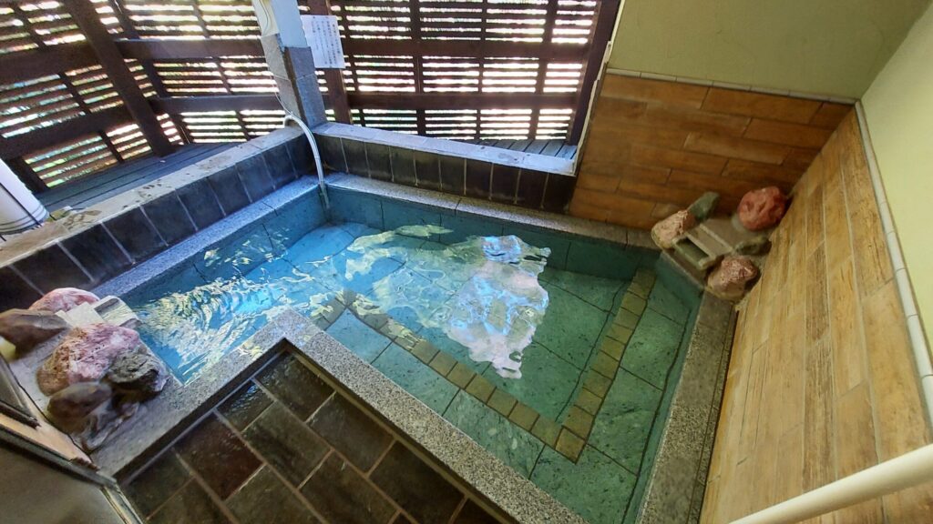 浴槽は、内湯と半露天1個ずつで、どちらも大人2人サイズです。