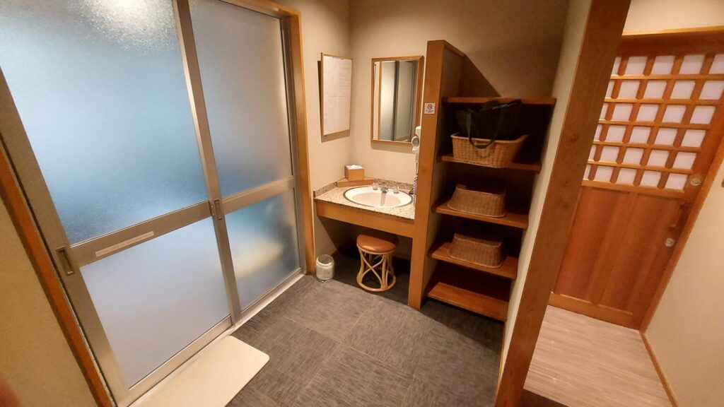 さて、貸切風呂ですが、脱衣場は綺麗で最低限の備え付けはなされています。