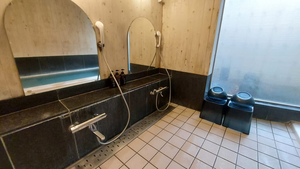体も頭も温泉で洗えますね。